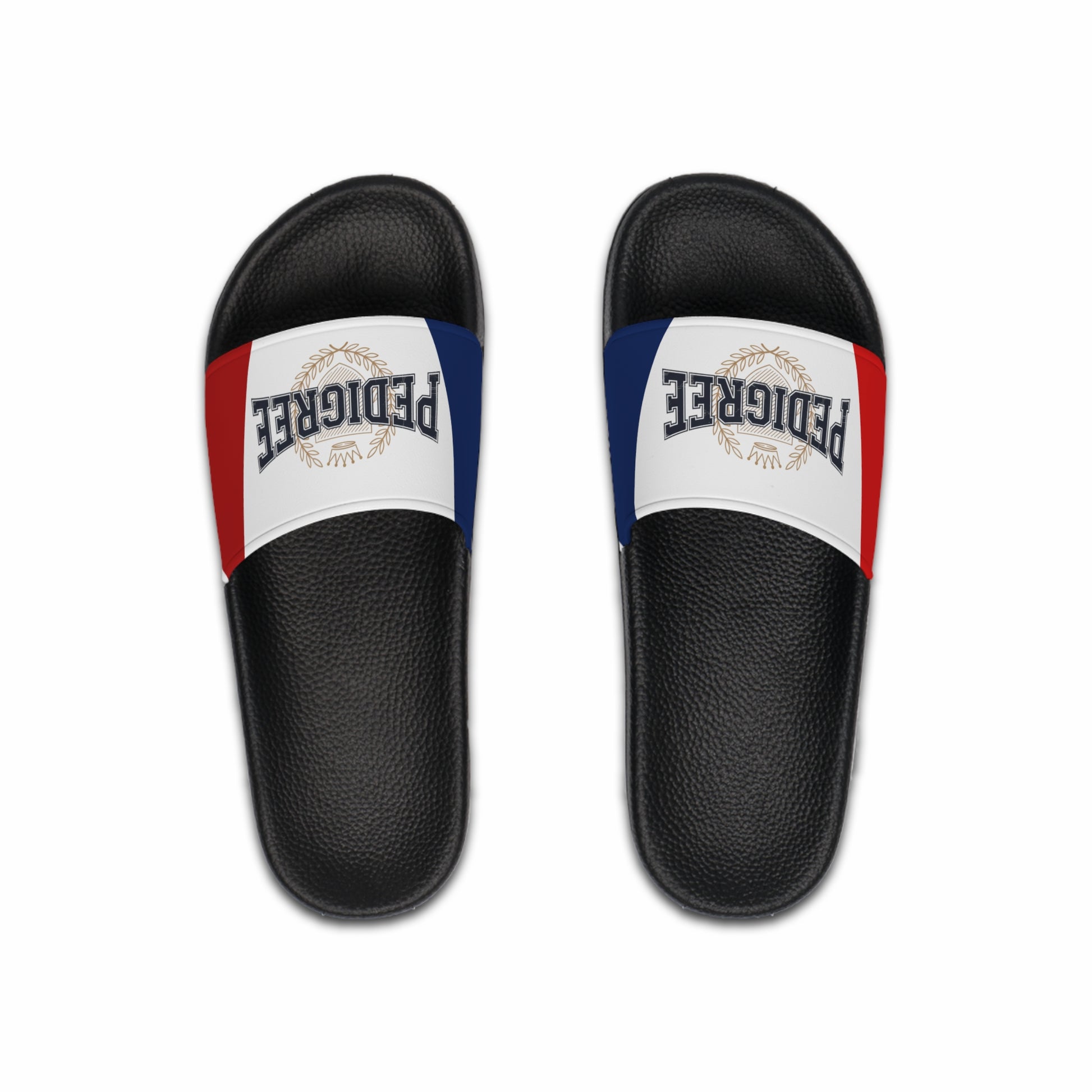 Pedigree Flag Slide Sandals — Men's Patriotic Red White Blue Pool Slides
