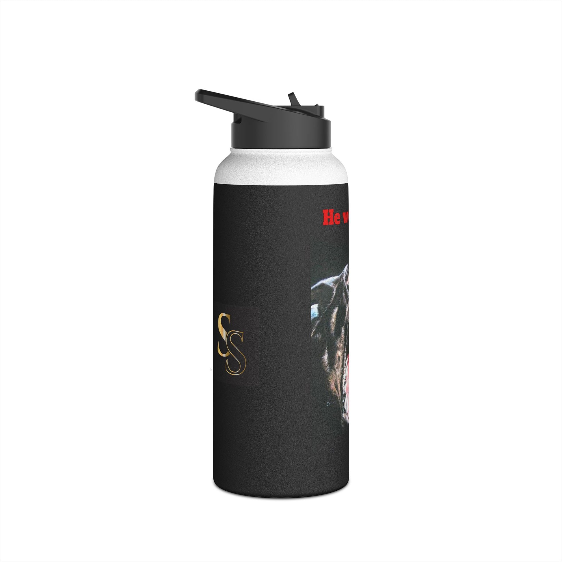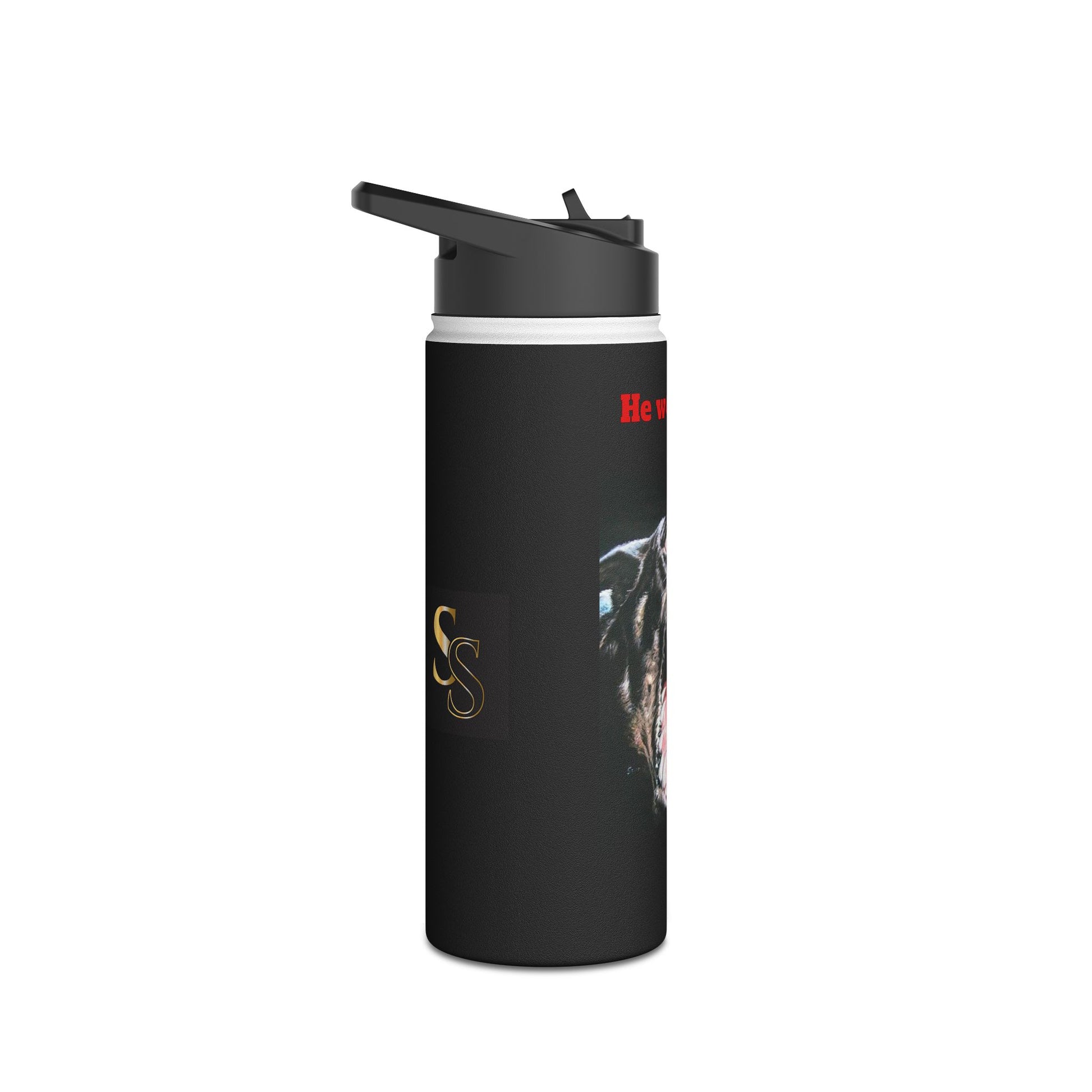 Rottweiler Stainless Steel Water Bottle - "He Won't Bite"